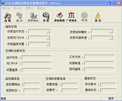 DJSI-1大金空調機監控器是為實現大金空調機與計算機監控功能而設計的專門化部件,該監控器向用戶提供一個計算機監控接口(RS232/RS485),通過該監控器用戶可獲取空調機的數據控制空調機。通過建設空調機集中監控系統,用戶可對空調機進行四遙(遙信、遙測、遙控、遙調),實現遠程維護。本軟件的主要功能和主界面如下。